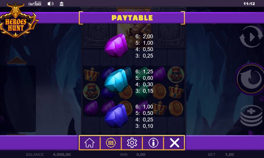 Heroes Hunt Megaways является очень необычным игровым автоматом. Оно состоит из 6 барабанов по 6 символов в каждом из них. Количество линий нефиксированное, поскольку выплаты осуществляются в зависимости от размера игрового поля. Максимальное число комбинаций составляет 46656.