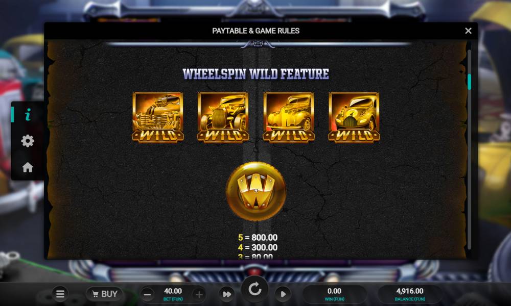 Основные правила Hot Rod Racers от Relax Gaming включают классическую раскладку символов на барабанах и множество возможностей для формирования выигрышных комбинаций. В игре используются различные символы, среди которых есть обычные и специальные: дикари заменяют другие знаки для создания комбинаций, а скаттеры активируют фриспины. Удвоение выигрыша через риск-раунд в слоте не предусмотрен.