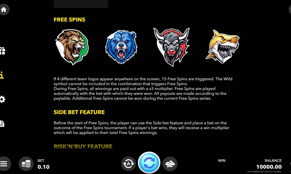 В разгар лета 2024 года разработчики студии Mascot Gaming выпустили Ice Number One. Слот посвящен сравнительно редкой в мире гемблинга тематике — хоккею. На поле сойдутся 4 команды: быки, акулы, медведи и львы. Слот имеет очень большой максимальный множитель, который можно выиграть — х15000. Несмотря на небольшие размеры поля, в Ice Number One есть разнообразный бонусный функционал, поэтому играть не будет скучно.