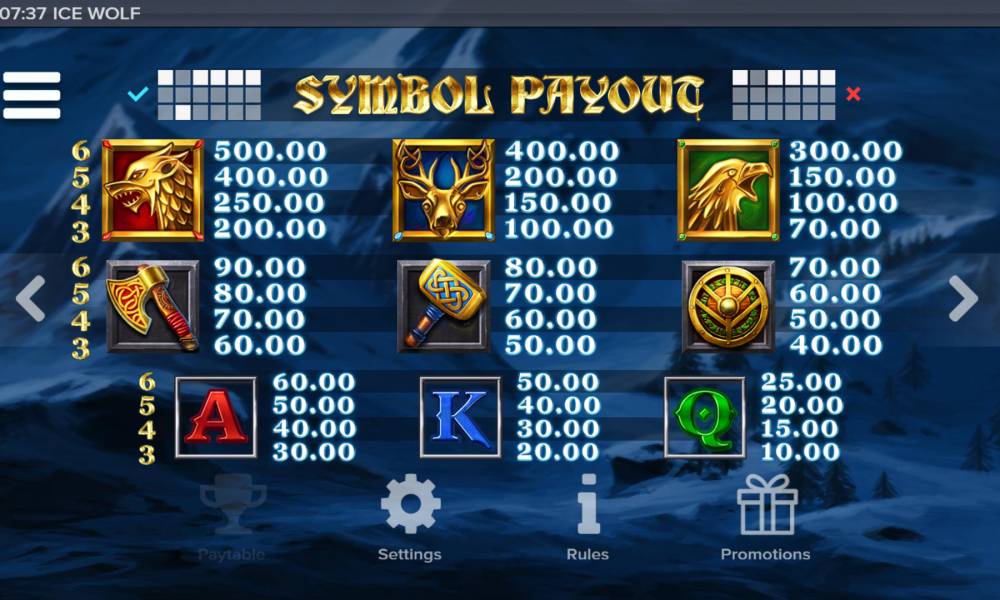 В «Ледяном волке» представлены базовые картинки, особые символы, респины, дополнительные множители и другие опции геймплея.