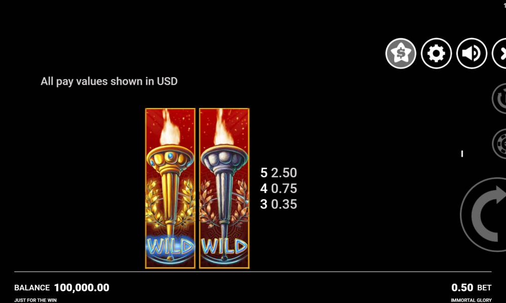 В слоте Immortal Glory не разыгрывается накопительная сумма, но представлены три фиксированных джекпота. Их размеры зависят от общей ставки игрока: