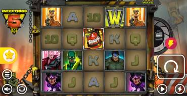 Infectious Spins: Mayhem Mode. Раунд запускается, когда сразу получено 5 знаков Bonus или когда они собраны во время фриспинов. Игрок получает 12 вращений Toxic Hazard или 10 Lock N` Load с немного измененными правилами. Все высокооплачиваемые изображения заменяются на золотые Infectious 5, которые оплачиваются в любых местах. Знак xWays тоже будет открывать только золотой символ.