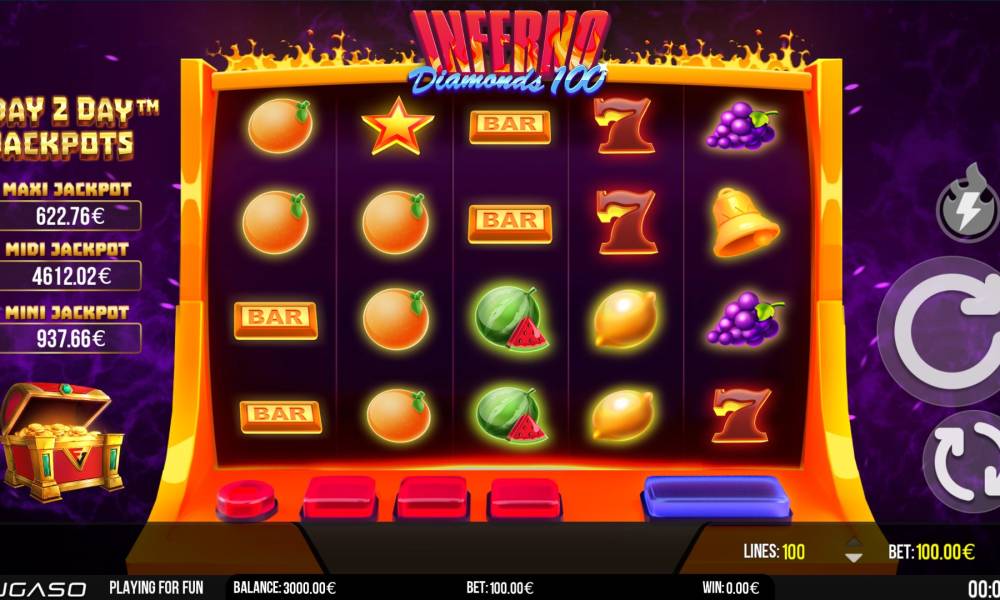 Inferno Diamonds 100 является ярким примером того, как компания FuGaSo создает увлекательные, полезные и визуально привлекательные игровые автоматы.