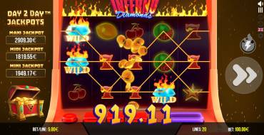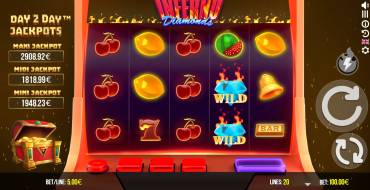 Inferno Diamonds — это захватывающий онлайн-слот, который предлагает игрокам уникальную возможность испытать свою удачу на пяти барабанах, двадцати фиксированных линиях и пятнадцати ячейках для символов на основном экране.
