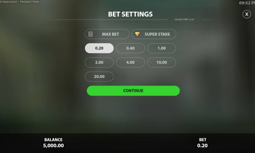 Слот Jaguar Strike от провайдера Stakelogic имеет поле вида 5х4 с 20 игровыми линиями.