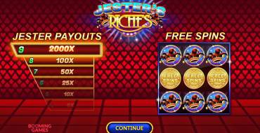 Маленькое поле размером 3х3 имеет 10 фиксированных линий выплат. На нем могут выпасть 5 обычных символов и еще 3 специальных. За обычные символы выплаты начисляются только за 3 одинаковых знака, приземлившихся на линии. Игрок может выбрать размер ставки в размере от 0.1 до 250, что хорошо: не все слоты имеют такой большой диапазон. Валюта ставки зависит и от казино, и от выбора гемблера (если есть несколько вариантов). Максимальный выигрыш составляет х2000 от ставки. Его можно получить, поймав 9 знаков Jester Payout. Онлайн-слот имеет риск-раунд с возможностью сделать х2 или х4 от выплаты, и фриспины.