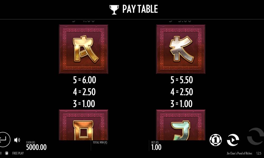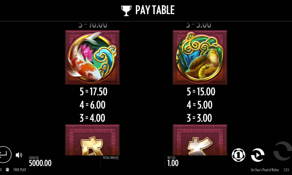 Игровой автомат Jin Chan's Pond of Riches от провайдера Thunderkick имеет классическое игровое поле из 5 барабанов по 3 символа в каждом. Выплаты производятся по 15 игровыми линиями.