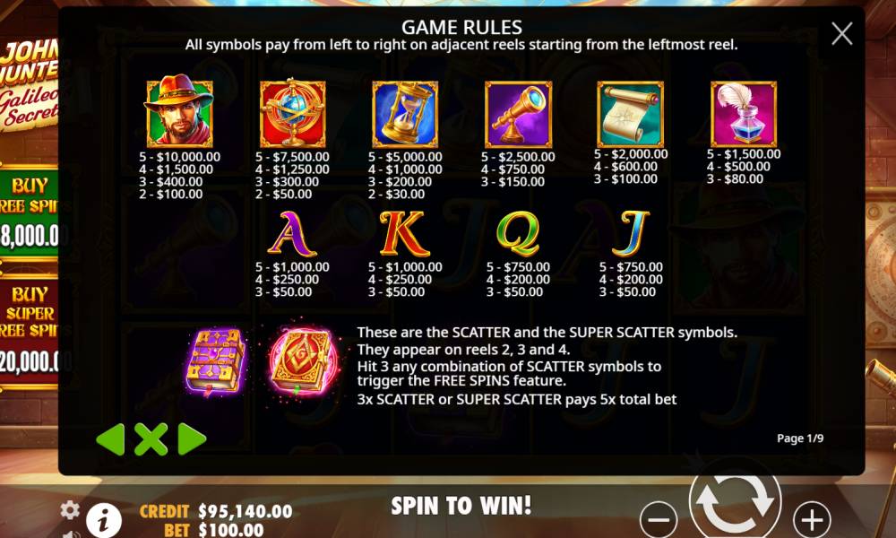 Правила John Hunter and Galileo's Secrets slot