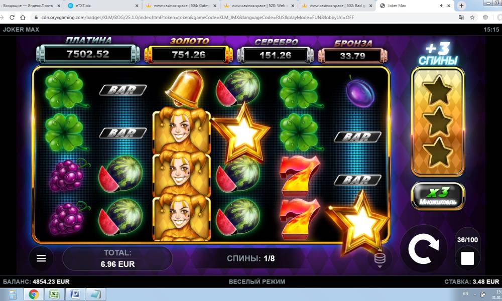 Искать стратегию выигрыша джекпотов на «Джокер Макс» нужно сначала в игре на виртуальные деньги. Демоверсия автомата есть на Casinoz. Пролистайте этот обзор в начало.
