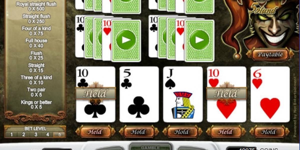 разновидность видео-покера, который играется стандартной колодой в 52 карты плюс один джокер, заменяющий любую карту. После каждой раздачи карты перемешиваются. Достоинство монет варьируется от десяти центов до пяти долларов. В игре пять уровней (аналог ставки в монетах), поэтому максимальная ставка на раздачу может быть двадцать пять долларов.
