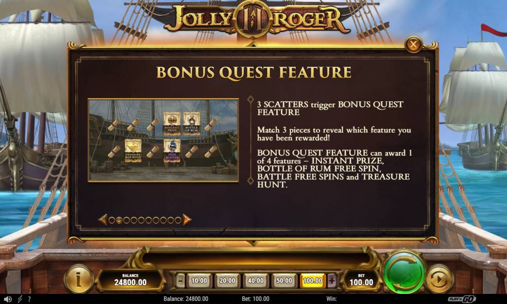 | Бонусные игры | Instant Prize, Bottle or Rum Free Spin, Battle Free Spins, Treasure Hunt, Bonus Quest |