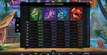 Изучив особенности слота и его функционал, вы сможете начать платить реальные деньги и наслаждаться реальными выигрышами. Игровой автомат Jurassic Party есть в разных онлайн-казино в списке ниже. Все они имеют лицензии и гарантируют честную игру. Прежде чем играть, посмотрите таблицу выплат, где содержится много информации о выигрыше комбинации.