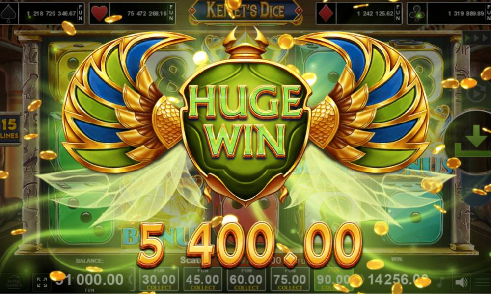 Даже новичок быстро разберется с игровым автоматом Kemet's Dice, ведь в нем все элементарно. В меню представлена таблица выплат, выигрышные линии, функции и бонусы. Там же есть раздел с правилами, настройками звуков и режимами игры. Если не терпится начать, то стоит: