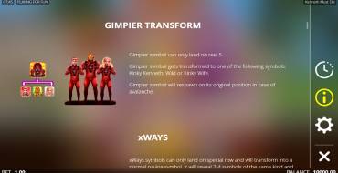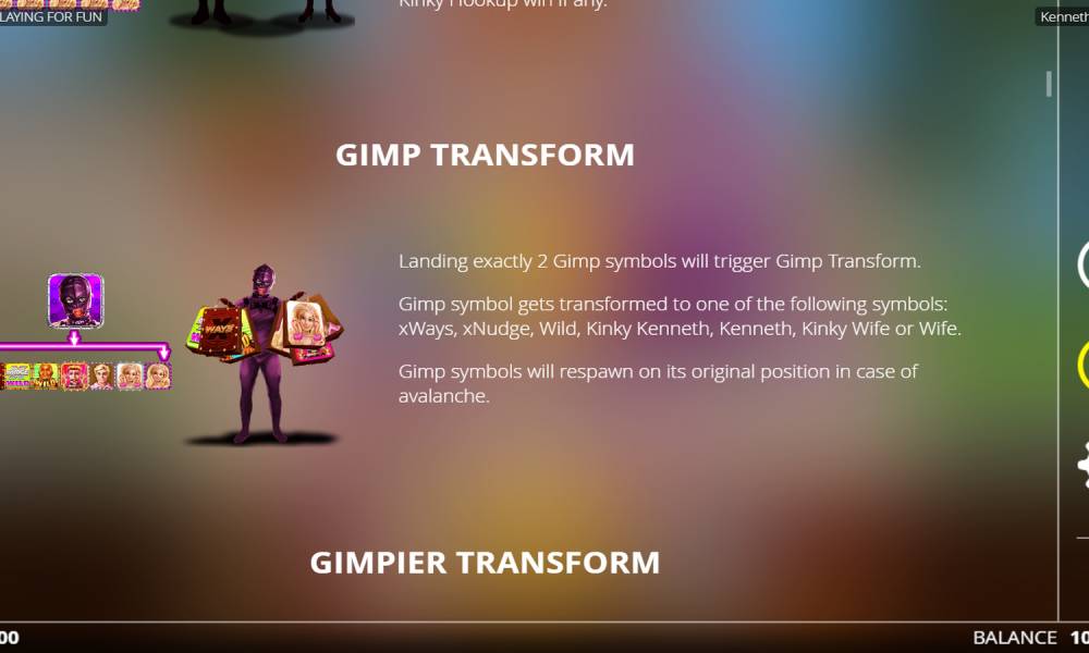 Gimpier Transform. Символ Джимпера может появиться только на 5 барабане. Он будет сразу трансформирован в один из других знаков — Kinky Kenneth, Wild или Kinky Wife.