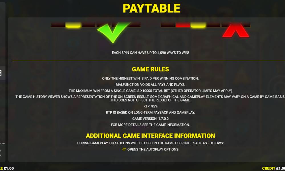 В онлайн-слоте предлагается 6 барабанов в 4 ряда и 4096 фиксированных линий выплат.