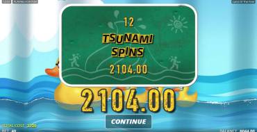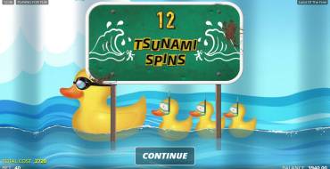 Tsunami Spins. Появление на поле 3, 4 или 5 символов Scatter приносит 12, 15 или 20 бесплатных вращений соответственно. Два нижних ряда погружаются в воду, на них действуют символы с ленты внизу. Уточки способны добавить фриспины и поднять уровень жидкости.