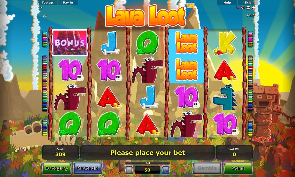 Компания Novomatic выпустила довольно смешной игровой автомат Lava Loot, главными героями которого стали первобытные люди. Они живут у подножия вулкана, который постоянно угрожает им извержением. Вокруг бродят зубастые динозавры, готовые полакомиться человечиной. В общем, жизнь персонажей слота полна опасностей, но они не унывают.
