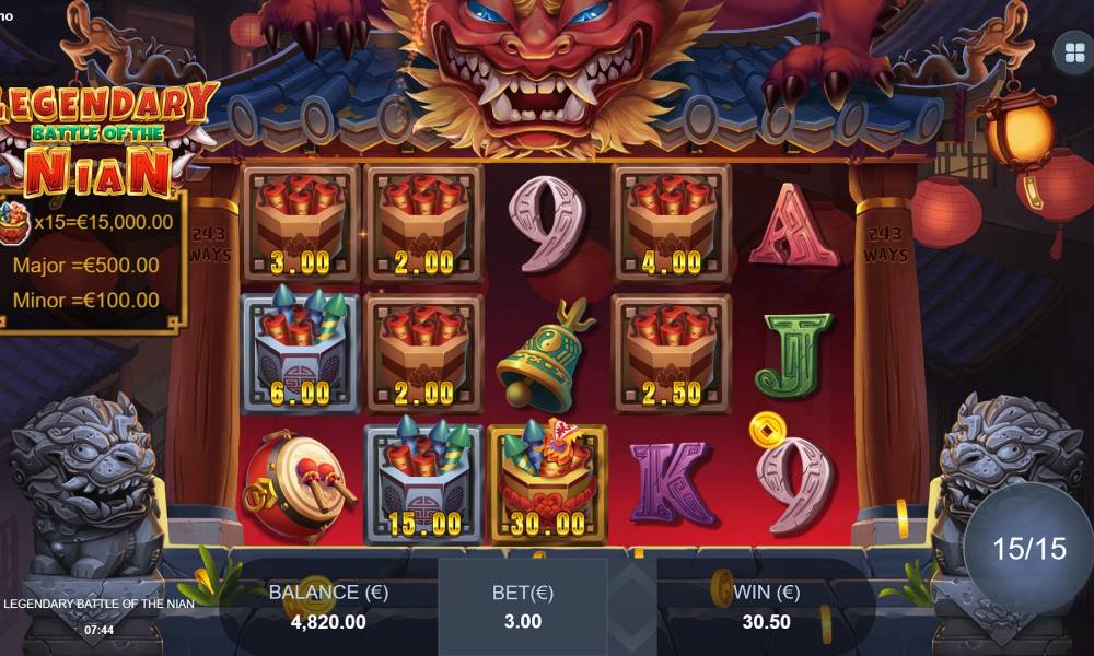Legendary Battle of the Nian — это один из дающих слотов производства компании Blue Guru. В нем барабаны не вращаются, символы просто исчезают и появляются, что уже не похоже на другие автоматы. Выплаты проводятся в любых местах, а значит у пользователей больше шансов на выигрыш. А если добавить к этому каскад символов на выигрышных позициях, то становится понятно, почему аппарат настолько выгоден. Пользователи отмечают его скромный дизайн, но широкий набор функций, вплоть до выдачи джекпотов. Поэтому заработать в нем более, чем реально.