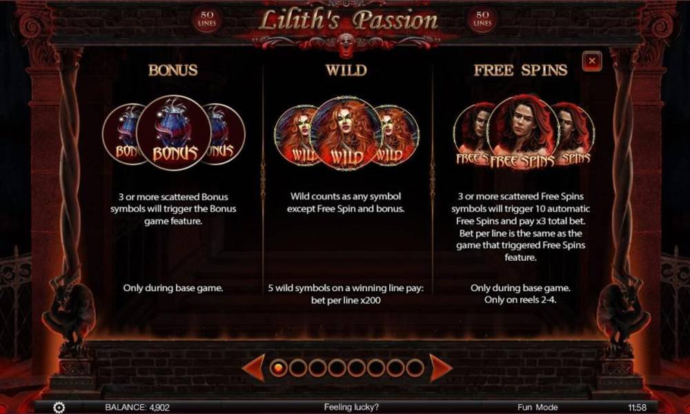 Демо-версия игрового автомата Lilith's Passion доступна для игры без регистрации на этой странице. Эта бесплатная версия игрового автомата дает пользователям возможность попробовать игру и убедиться, что ее игровая механика им подходит.