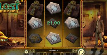 В слоте Lost: Mystery Chests 3 барабана по 3 ряда. Комбинации составляются исключительно из трех одинаковых символов, расположенных по одному на каждом столбце. Игра использует 3 младших и 2 старших знака. В автомате есть 10 фиксированных линий для выплат. Все бонусы связаны с таинственным сундуком, который может подарить денежный приз, фриспины и многое другое. Пользователи могут ставить на спин разные суммы от 0.1 до 150 евро. Максимальный выигрыш составляет х2520 от выбранной суммы.
