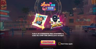 В обычном игровом режиме Love is in the Fair довольно классические правила, но бонусы вносят некоторое разнообразие в геймплей. Поле с барабанами стандартное, 5х3. Во вращениях принимает участие 9 рядовых и 2 специальных символа. Комбинации учитываются слева направо, по 20 фиксированным линиям. Для получения приза из таблицы выплат необходимо минимум три одинаковых знака подряд. Максимальный выигрыш составляет х10000 от ставки текущего раунда. Волатильность онлайн слота высокая и это основной его недостаток. Диапазон ставок составляет от 0.1 до 100 у.е., но данное значение может быть изменено самим казино.