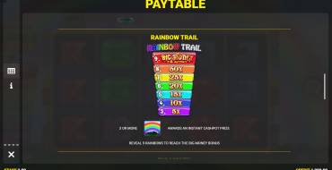 Rainbow Trail или Go For Gold Feature. При выпадении радуг пользователь получает моментальную выплату. Она является множителем ставки. За 3, 4, 5, 6, 7, 8 радуг дается х5, х10, х15, х20, х25, х50. Суммы выигрыша всегда отображаются в радужной тропе рядом с барабанами. Для получения выплаты достаточно поймать символы в любом месте игрового поля.