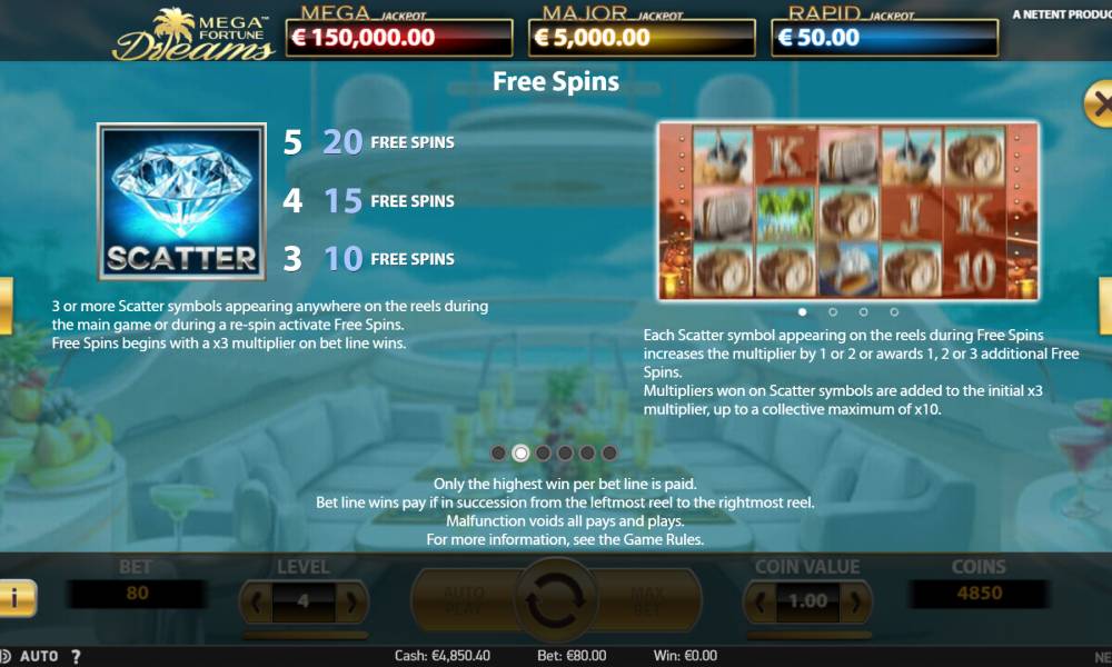 Размер максимальной ставки в Mega Fortune Dreams - 80$.