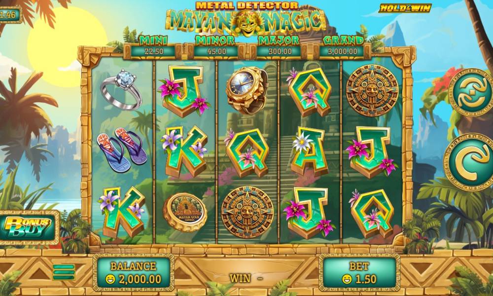 Маски дают случайные призы от 1x до 10x, а сундуки с сокровищами предлагают мини-, малые или большие джекпоты. Особо нетерпеливые игроки могут воспользоваться функцией покупного бонуса, который сразу открывает доступ к Mayan Magic Hold & Win.