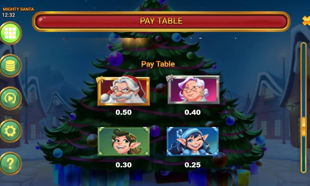 Mighty Santa Multiplier Drops. Работает только во фриспинах. Перед первым вращением есть шанс, что над полем пролетит Санта, и уронит из мешка с подарками дополнительный множитель х5, х10, х20 или х50. Игрок получит его к сумме выигрышей с фриспинов после завершения раунда.