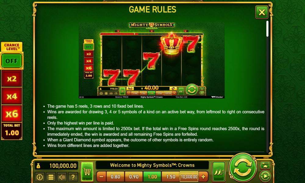 Если вы хотите попробовать дающий автомат Mighty Symbols: Crowns от Wazdan, выбирайте только проверенные казино, которые гарантируют честные выплаты и безопасность. На Casinoz мы рекомендуем лучшие онлайн казино для того, чтобы играть на деньги.