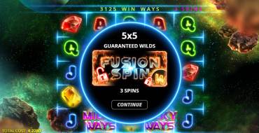 Fusion Spins. Запускается во время фриспинов. Каждая выигрышная комбинация останавливается на своем месте, а игроку дается респин. Если еще выпадают такие же символы, они тоже блокируются и добавляется еще вращение. Так происходит до тех пор, пока удлиняется цепочка выигрышных знаков. Как только новых призовых изображений нет, проводится выплата и переход на следующий фриспин.