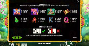 В модели реализованы такие опции геймплея: базовые иконки, джокер, скаттер, бонусный символ, фриспины, призовые выплаты и система джекпотов.