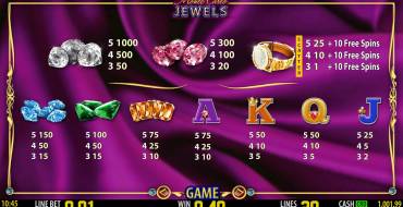 Легко догадаться, что на барабанах видео-слота «Драгоценности Монте-Карло» изображены различные драгоценные камни. Кроме того, здесь можно увидеть номиналы карт от валета до туза.