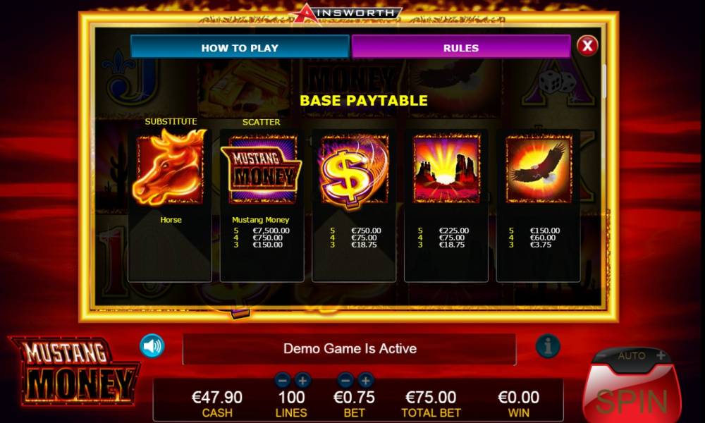 В этой статье от обозревателей Casinoz обсуждается еще одна модель компании Ainsworth, выпускающей оффлайновые и онлайновые азартные игры. Речь пойдет о видео-слоте Mustang Money, в котором выигрышные цепочки образуются на большом количестве линий, а также есть ряд дополнительных функций геймплея. Все они подробно рассматриваются далее.