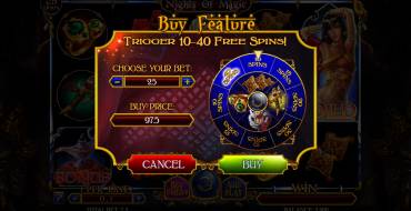 Игровой автомат Nights Of Magic от провайдера Spinomenal имеет классическое игровое поле, состоящее из 5 барабанов по 3 символа в каждом. Игра ведется по 25 линиям.