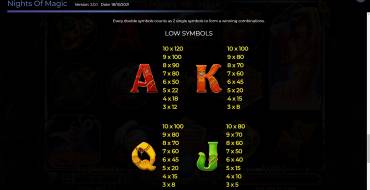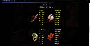 Изучив особенности слота и его функционал, вы сможете начать платить реальные деньги и наслаждаться реальными выигрышами. Игровой автомат Nights of Magic есть в разных онлайн-казино в списке ниже. Все они имеют лицензии и гарантируют честную игру. Прежде чем играть, посмотрите таблицу выплат, где содержится много информации о выигрыше комбинации.