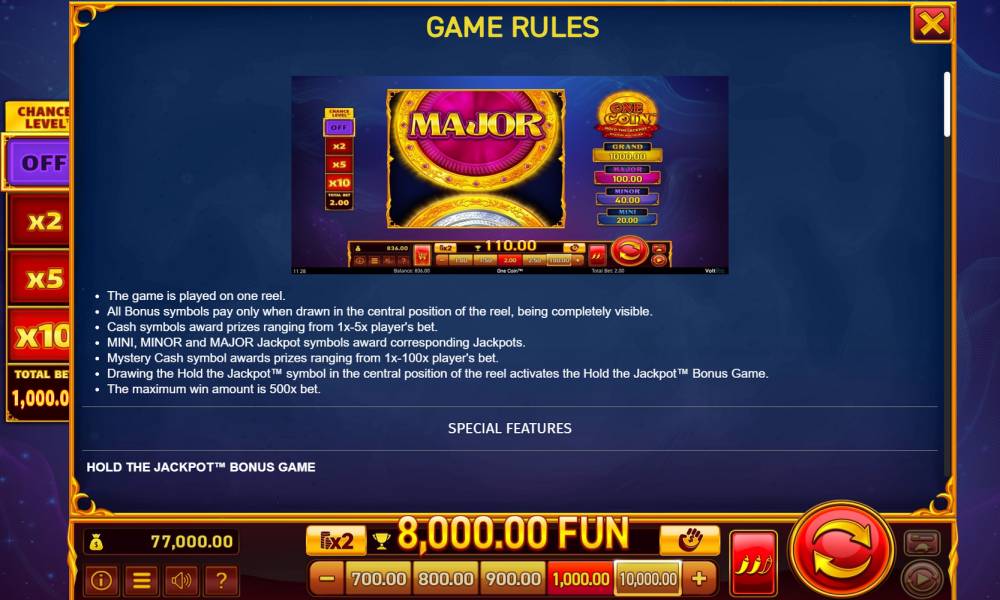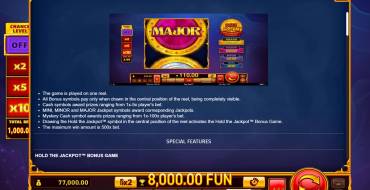 MINI, MINOR и MAJOR символы присуждают джекпоты 10x, 20x и 50x ставки соответственно.