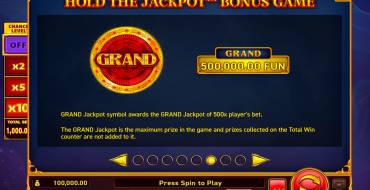 Максимальный приз — Grand Jackpot, который равен 500x от суммы ставки.