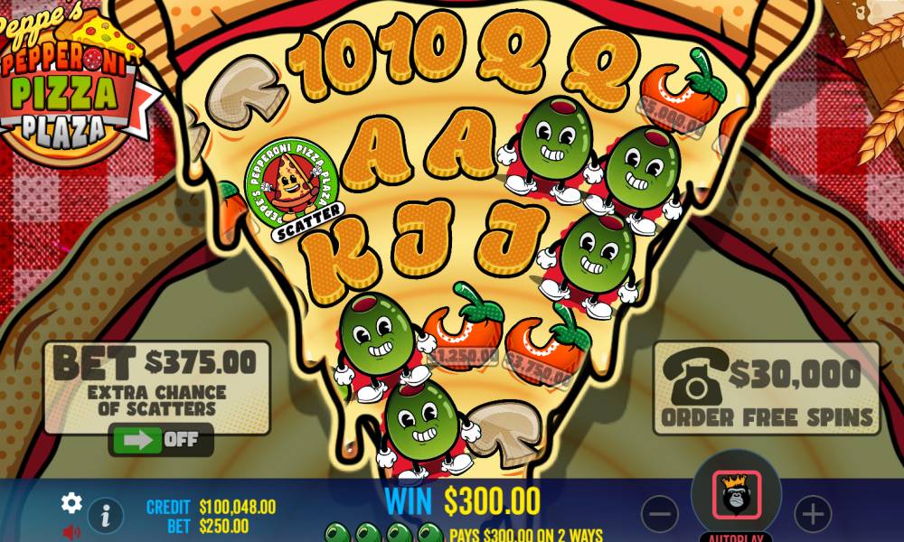 Peppe's Pepperoni Pizza Plaza — это слот с необычным полем в форме куска пиццы. У него нестандартный размер поля и принцип выплат без линий: платят группы символов, которые начинаются от нижнего угла. Можно выиграть до х6000 от ставки. Есть фриспины и большой набор необычных Wild-функций. Кроме обычного принципа выплат за комбинации простых знаков еще есть функция Collect. Разработчик слота — провайдер Pragmatic Play.