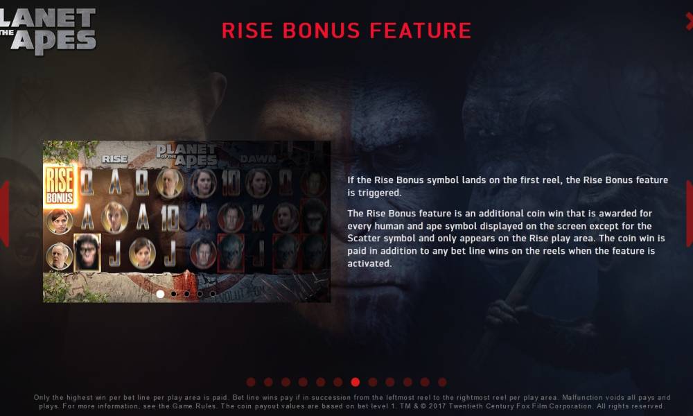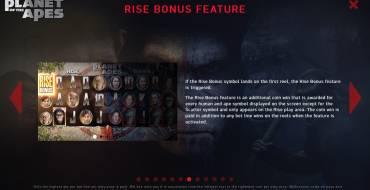 О бесплатных спинах Rise Free Spins и Dawn Free Spins рассказывалось выше в обзоре Planet of the Apes slot.