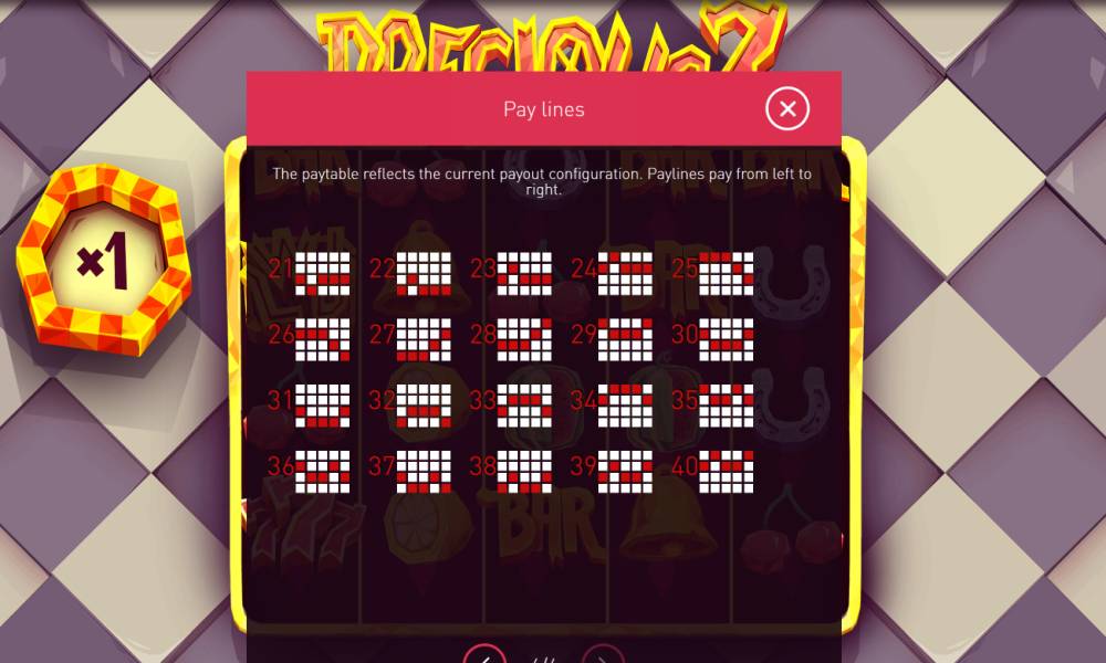 В слоте продумана упрощенное игровое поле на 5 барабанов и 4 ряда. Всего предлагают 40 линий, где вы можете выиграть. Выигрыш формируется слева направо на активных линиях. Вы можете вложить от 40 до 10 000 монет за вращение. При этом максимальный выигрыш составляет 5500x от ставки. Все просто: соберите комбинацию символов на линиях, а бонусы и фриспины увеличат ваш выигрыш!