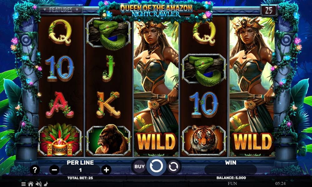 Новый слот провайдера Spinomenal именуемый Queen Of The Amazon – Nightcrawler готов предложить увлекательный геймплей, отличные бонусные функции и высококачественную графику. Все, что требуется от игрового автомата! Учитывая неплохие технические характеристики, игра "зайдет" многим любителям одноруких бандитов.