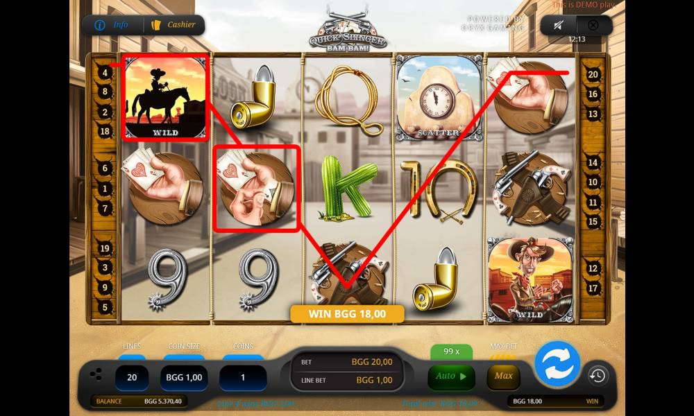 Quick Slinger Bam Bam — это аппарат с простой механикой и элементарным управлением. Все действия происходят на фоне улочки Западной Америки времен ковбоев. Анимация завораживает, а сама игра поднимает настроение своей комичностью и строгостью одновременно. Чтобы погрузиться в мир Билли Фаста, необходимо сделать следующее: