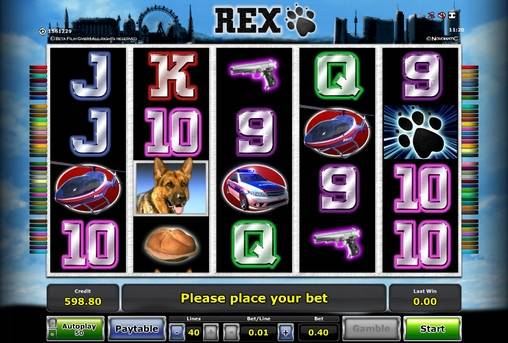 Пересказывать сюжет сериала нет смысл, ибо вряд ли найдется хоть один человек, который не знает о немецкой овчарке по кличке Рекс, которая доблестно помогает австрийским полицейским из криминального отдела расследовать убийства. Поэтому давайте сразу перейдем к видео-слоту Rex («Рекс»), созданному по мотивам знаменитого фильма.