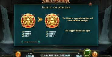 В левом нижнем углу можно открыть меню, таблицу выплат, справочный раздел и настройки. Регулируются лимиты автоматического режима, звук, скорость игры и другие параметры. Скачивать видеослот «Щит Афины» не нужно.