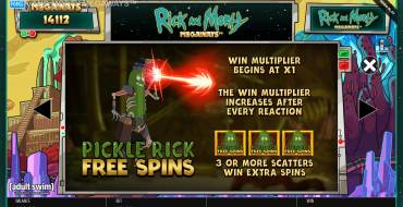 Бонусные игры Free Spins, Mystery Symbols, Megaways, Bonus Wheel, Random Wilds, Avalanche, Cascading Symbols, Pickle Rick Free Spins, Federation Free Spins, Vindicators Free Spins, Mystery Free Spins, Symbols collection, Free Spins Mode, Free Spins Multiplier, RTP range, Scatter symbols, Multiway (+1024), Spin The Wheel, Wild