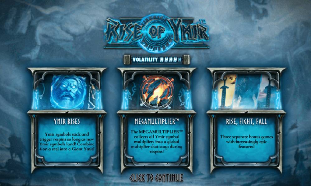 Rise of Ymir — уникальный слот с тематикой древнескандинавской мифологии о сотворении мира. Главный герой здесь — созданный из капель воды первородный ледяной великан Имир, которому суждено было стать великим прародителем всего живого. Игра погружает в атмосферу могучего Севера, приглашая посетить мрачный мир древних богов, где происходят динамичные сражения за большие призы.