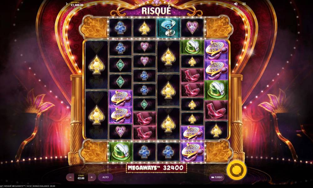 Игровой автомат Risque Megaways от провайдера Red Tiger имеет классическое поле, состоящее из 6 барабанов, количество символов в которых определяется механикой Megaways. Выплаты производятся по 321489 комбинациям.