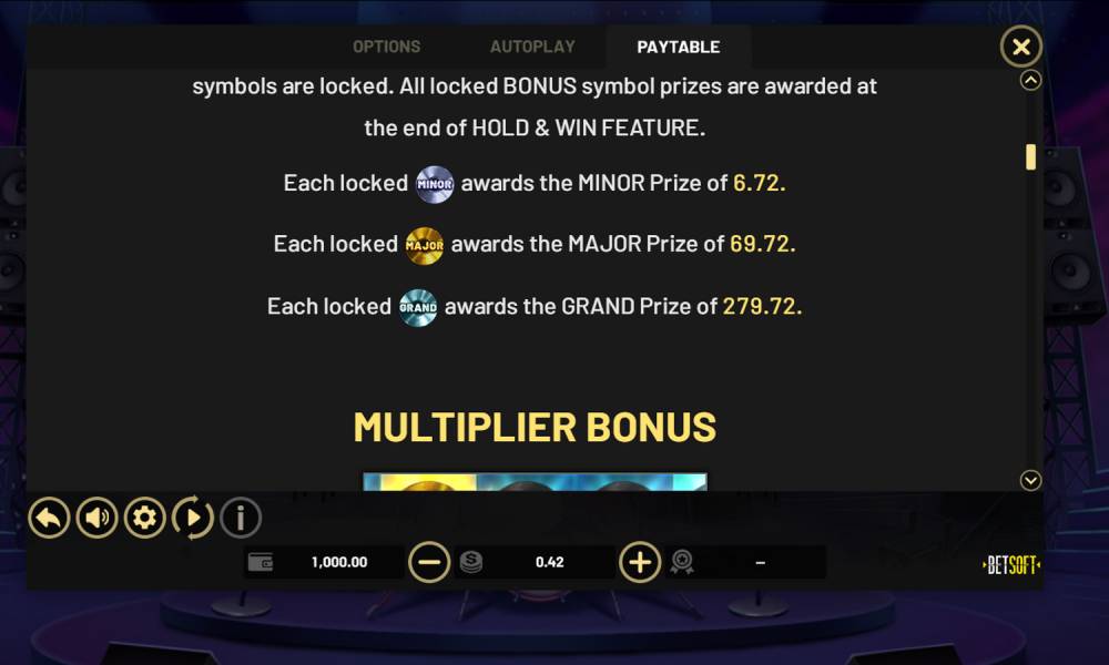 Во время раунда Hold and Win Feature пользователь может выиграть один или несколько джекпотов. В слоте RockStar World Tour Hold&Win их три вида: