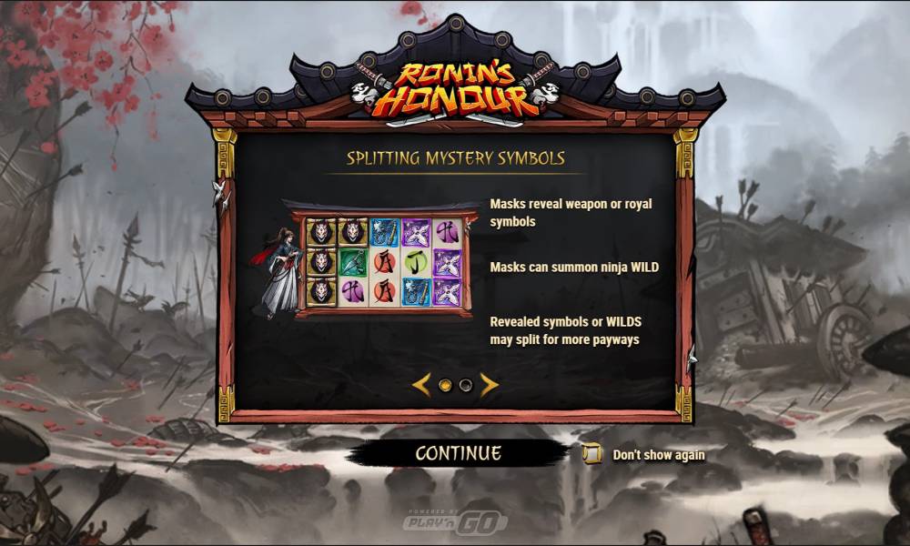 Максимальный выигрыш в Ronin’s Honour составляет х30000, но при этом у него высокая волатильность и не слишком большое верхнее значение ставки, всего 25 у.е. Зато минимальный бет позволяет новичкам попробовать свои силы и набраться опыта. Игра предлагает 5 барабанов с 243 линиями выплат. Составление комбинаций выполняется слева направо, засчитывается от 3 одинаковых символов идущих подряд. Знаки могут становиться Splitted при активации бонуса. Фриспины представлены в виде дуэли. Всего используется 8 стандартных и 2 специальных знака, но Wild может изменяться в зависимости от режима игры.